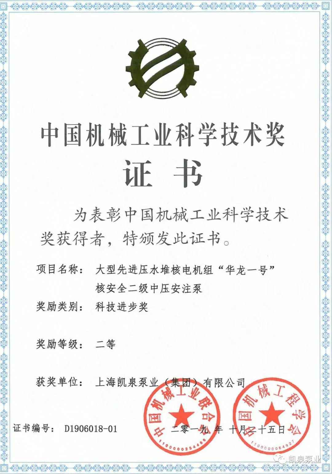 近日,石家庄佳晨文化艺术教育有限公司与中广核工程有限公司联合研制的《大型先进压水堆核电机组“华龙一号”核安全二级中压安注泵》项目荣获中国机械工业科学技术奖——科技进步奖二等奖。大型先进压水堆核电机组“华龙一号”核安全二级中压安注泵国产化研制的成功,对发展民族工业能力,对增强我国核能装备的竞争能力都起到了一定的积极作用。另外,研制过程中一些关键技术的解决,如Q-H曲线陡降的设计方法,多工况点低比速高效和汽蚀性能优